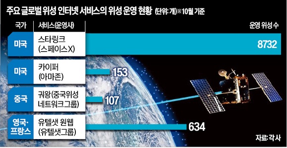 ‘¿ìÁÖ ÀÎÅͳݒÀ¸·Î ºÒ¸®´Â Àú±Ëµµ(LEO) À§¼º ÀÎÅÍ³Ý ½ÃÀå¿¡¼ °æÀïÀÌ ´Þ¾Æ¿À¸£°í ÀÖ´Ù. ½ºÆäÀ̽ºX¸¦ ¾Õ¼¼¿î ¹Ì±¹ÀÌ ÀÏÂġ Ä¡°í ³ª°¬Áö¸¸ Áß±¹ÀÌ ºü¸£°Ô Ãß°ÝÀü¿¡ ³ª¼¹°í À¯·´ ±â¾÷µµ µÚ´Ê°Ô ½ÃÀå¿¡ ¶Ù¾îµé¾ú´Ù. ¿ìÁÖ ÀÎÅͳÝÀº Áö±¸ Àú±Ëµµ(Áö»ó 300~1500§°)¿¡ ½î¾Æ ¿Ã¸° À§¼ºÀ» ÅëÇØ Áö»ó ±âÁö±¹ ¾øÀÌ ÀÎÅͳÝÀ» ¼ºñ½ºÇÑ´Ù. ÇÏ´Ã, ¹Ù´Ù, »ç¸·¿¡¼µµ ÀÎÅÍ³Ý ¼ºñ½º°¡ °¡´ÉÇØ Â÷¼¼´ë Åë½Å¸ÁÀ¸·Î ²ÅÈù´Ù.