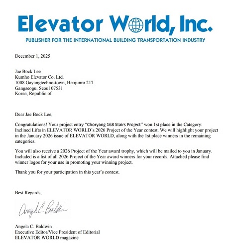 '¿¤¸®º£ÀÌÅÍ ¿ùµå'ÃøÀº ³»³â 1¿ù ½Ã»ó½ÄÀ» °³ÃÖÇϰí, ÃÊ·®168°è´Ü °æ»çÇü ¿¤¸®º£ÀÌÅ͸¦ Æ÷ÇÔÇÑ ¼ö»óÀÛµéÀ» '¿¤¸®º£ÀÌÅÍ ¿ùµå ¸Å°ÅÁø' 2026³â 1¿ùÈ£¿¡ Á¤½Ä °ÔÀçÇÒ ¿¹Á¤À̶ó°í ¹àÇû´Ù. ÇÑÆí, µ¿±¸´Â »êº¹µµ·Î °íÁö´ë Áֹεé°ú °ü±¤°´µéÀÇ À̵¿ ÆíÀǸ¦ À§ÇØ Áö±¸º° ÃÑ 5°³¼ÒÀÇ °æ»çÇü ¿¤¸®º£ÀÌÅÍ ±¸ÃàÀ» ¸ñÇ¥·Î »ç¾÷À» Àû±Ø È®´ëÇϰí ÀÖ´Ù. ÇöÀç ÁÂõ¾ÆÆÄÆ® 3È£±â ¹× ÀÌÁß¼· °è´Ü ÀÏ¿ø¿¡ °æ»çÇü ¿¤¸®º£ÀÌÅÍ »ç¾÷À» ÃßÁøÇϰí ÀÖÀ¸¸ç, ÃÊ·®48°è´Ü·¼öÁ¤»ê°¡Á·Ã¼À°°ø¿ø·±Ý¼º°íµîÇб³ ÀÏ¿ø¿¡µµ °æ»çÇü ¿¤¸®º£ÀÌÅÍ ¼³Ä¡¸¦ °èȹÇϰí ÀÖ´Ù.