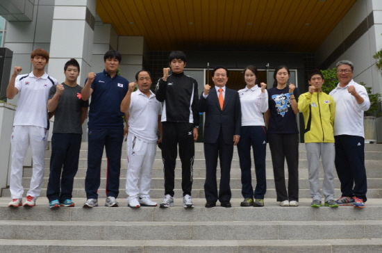 °­ ½ÃÀåÀº ¼±¼öÃÌÀ» ¹æ¹®ÇÏ°í ¡°±×µ¿¾È °¥°í ´ÛÀº ±â·®À» ÇѲ¯ ¹ßÈÖÇØ ¿À´Â 2015³â¿¡ ±¤ÁÖ¿¡¼­ °³ÃֵǴ ¡®2015±¤ÁÖÇϰèÀ¯´Ï¹ö½Ã¾Æµå´ëȸ¡¯¸¦ ¼¼°è ¼Ó¿¡ ³Î¸® ¾Ë·Á ´Þ¶ó¡±°í ´çºÎÇß´Ù.