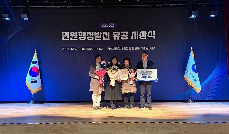 [¼­¿ïÆ÷½ºÆ® ¼­Àμ® ±âÀÚ=] ¼ö¿øÆ¯·Ê½Ã(½ÃÀå ÀÌÀçÁØ)°¡ ¹Î¿øÃ³¸®´ã´çÀÚ º¸È£¸¦ À§ÇÑ Á¦µµÀû ±â¹ÝÀ» ±¸ÃàÇÑ ¼º°ú¸¦ ÀÎÁ¤¹Þ¾Æ ÇàÁ¤¾ÈÀüºÎ ÁÖ°ü '¹Î¿øÇàÁ¤¹ßÀü À¯°ø(¹Î¿øÃ³¸®´ã´çÀÚ º¸È£) ºÐ¾ß' ´ëÅë·É»óÀ» ¹Þ¾Ò´Ù. ½Ã»ó½ÄÀº 23ÀÏ Á¤ºÎ¼¼Á¾Ã»»ç¿¡¼­ ¿­·È´Ù. ¼ö¿ø½Ã´Â Àü±¹ ÃÖÃÊ·Î 'ƯÀÌ(¾Ç¼º)¹Î¿ø ´ëÀÀ Àü¹®°üÁ¦µµ'¸¦ µµÀÔÇØ ¹Î¿ø ´ã´ç °ø¹«¿øÀÇ ¾ÈÀü°ú ±ÇÀÍÀ» º¸È£Çϰí, ½Å¼ÓÇϰí ü°èÀûÀÎ ´ëÀÀü°è¸¦ Á¤Âø½ÃŲ Á¡À» ³ô°Ô Æò°¡¹Þ¾Ò´Ù.
